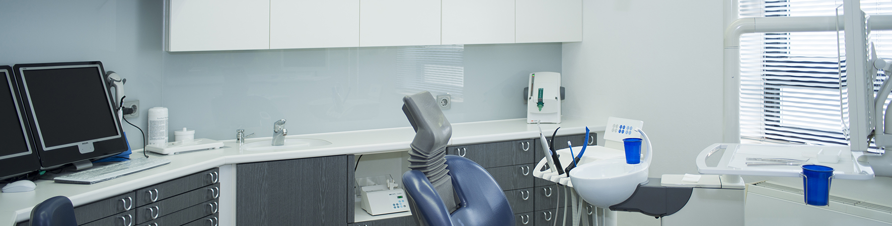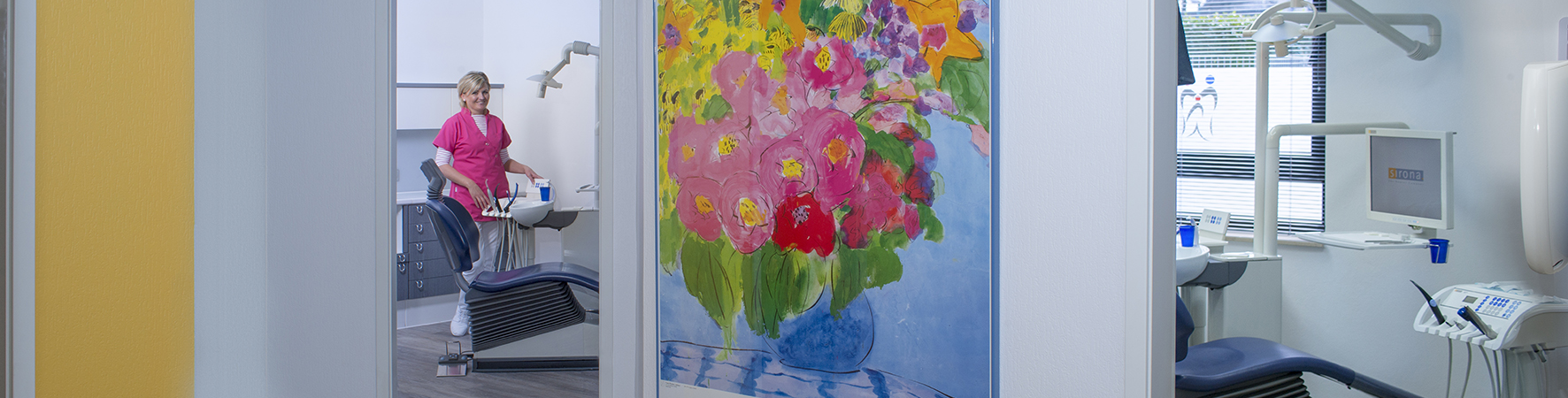Für unsere vielen kleinen Patienten haben wir eigens einen Raum eingerichtet. Mehr Farbe und weniger sichtbare Technik nehmen den kleinen Besuchern schnell die Angst.